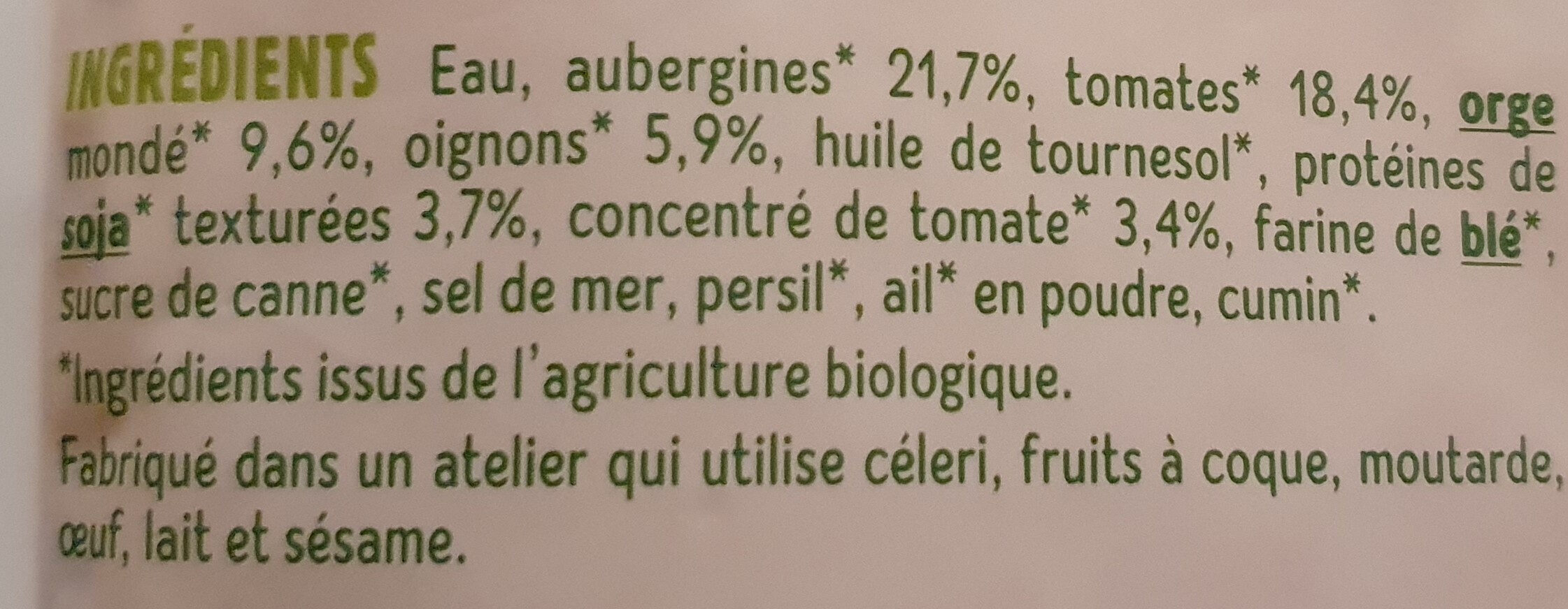 | Product Name | Cuisiné Aubergines, Orge Et Soja |