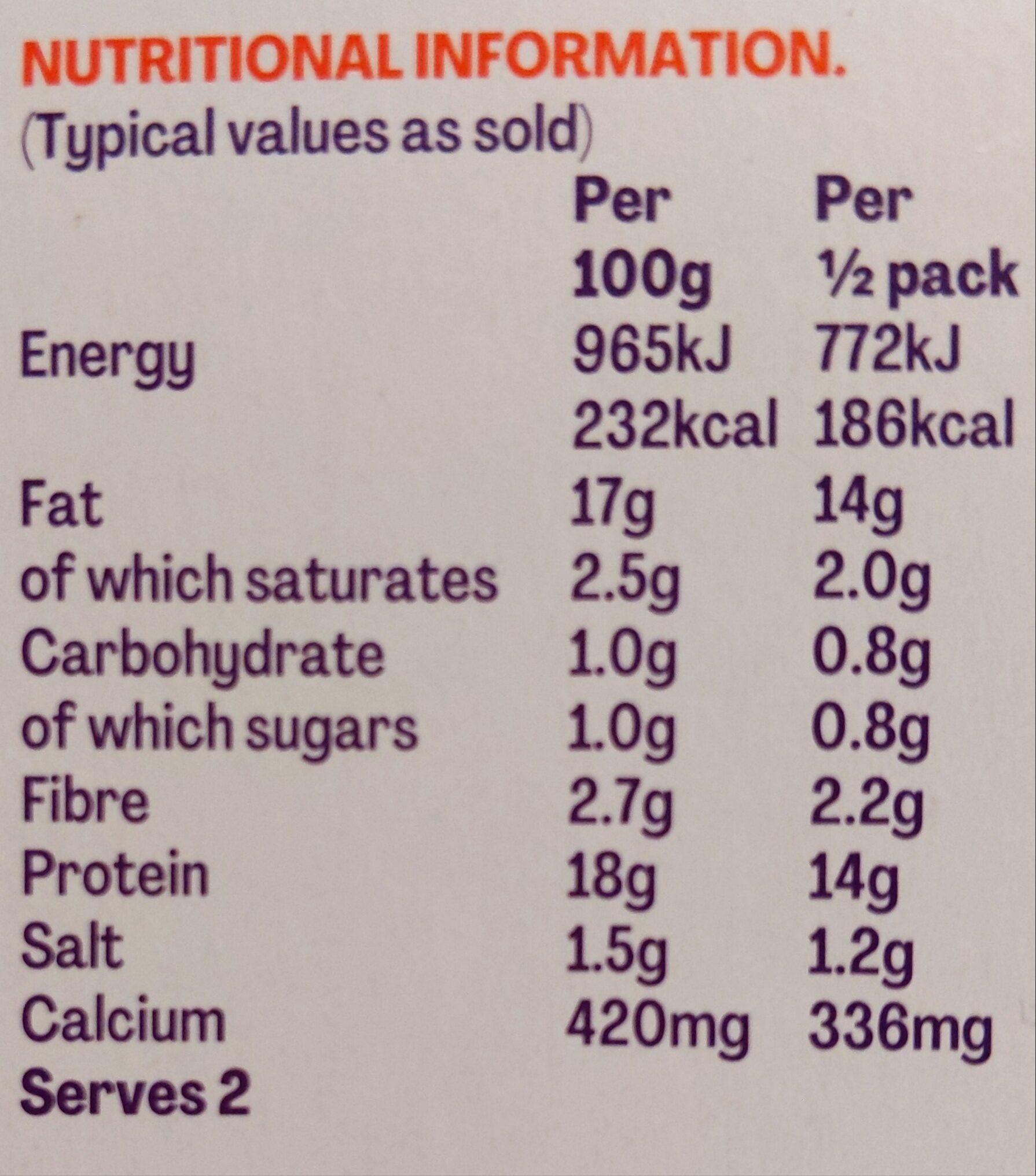| Energy | 232.00 kcal |