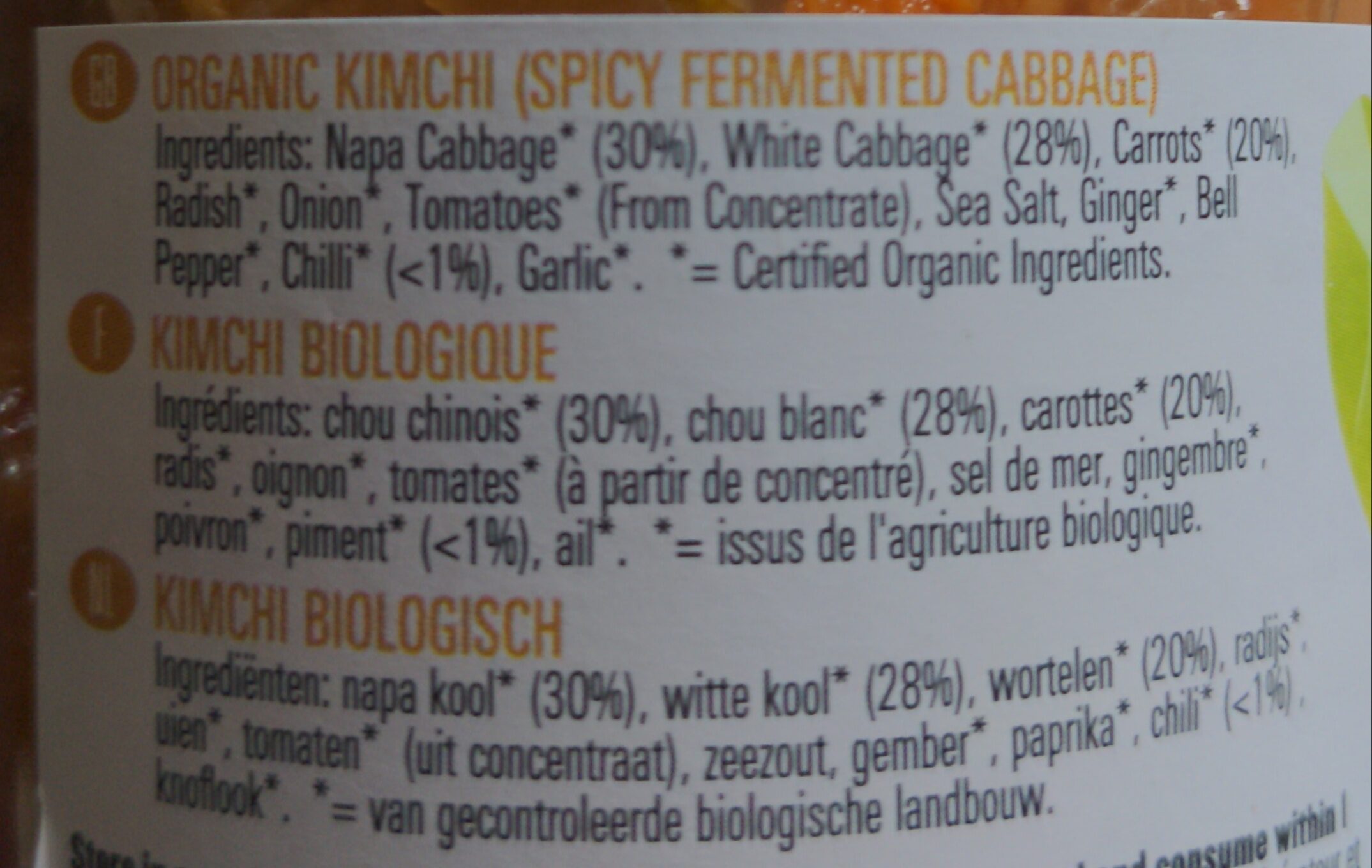 | Product Name | Organic Kimchi |