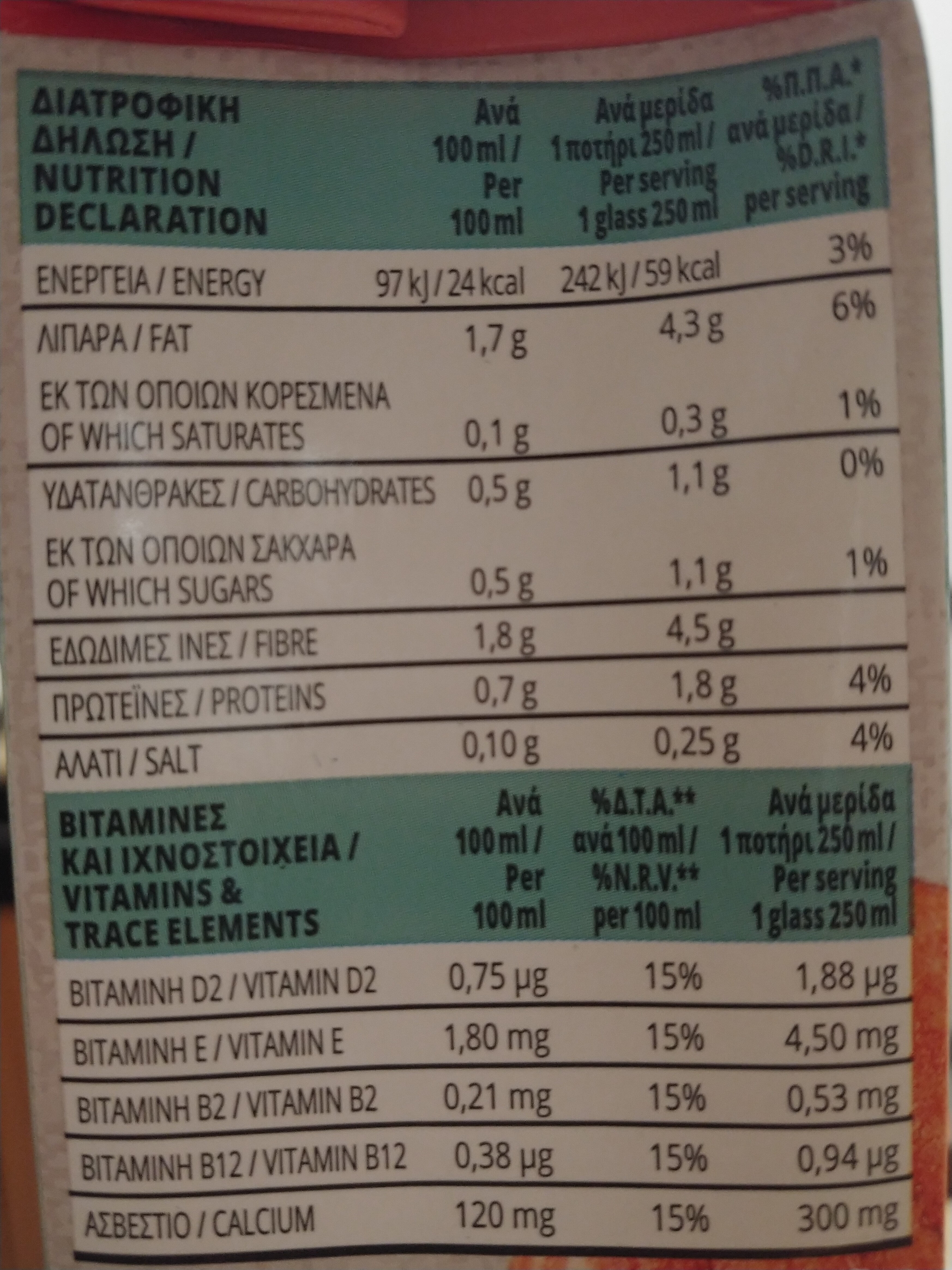 | Vitamin D | <0.1 µg |